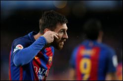 Der argentinische Superstar verzichtete auf seinen "klassischen" Torjubel, zeigte nicht mit beiden Zeigefingern gen Himmel. Stattdessen wischte sich der Barca-Superstar mit zwei Fingern über die Wange, als würde sich der Argentinier eine Kriegsbemalung auftragen.