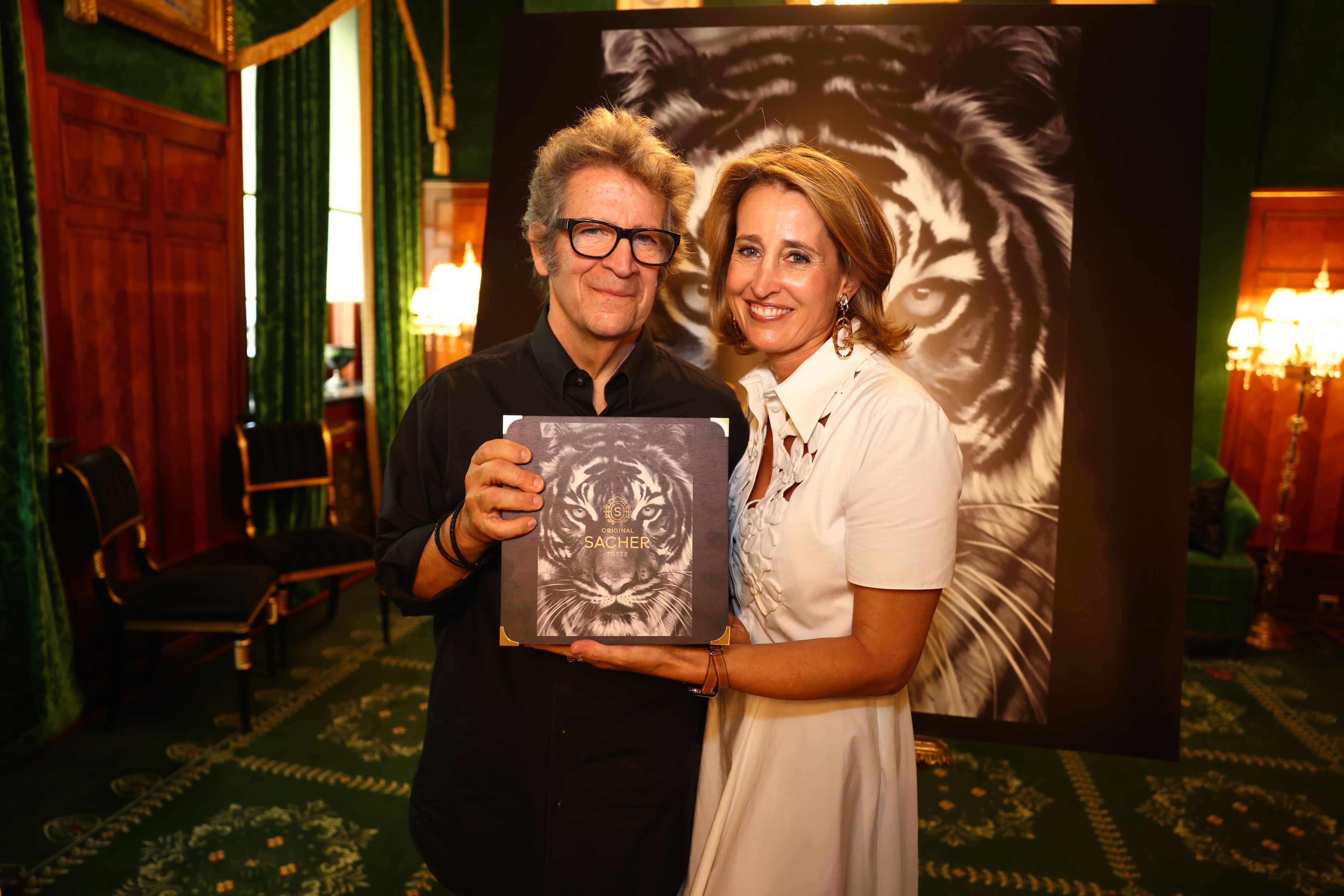 „Wir präsentieren heute einen Tiger zum Anbeißen, 576 cm² Kunstwerk und 12 Tortenstücke - damit tut man sich selbst etwas Gutes und zudem etwas Gutes für die Forschung“Alexandra Winkler"Sacher"-Eigentümerin