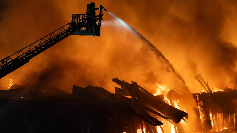 Das betroffene Gebäude brannte aber völlig aus. Auch darin abgestellte Fahrzeuge wurden ein Raub der Flammen. Personen kamen glücklicherweise nicht zu Schaden.