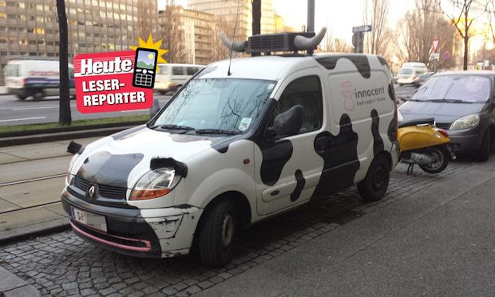 "Nicht nur Eier oder angere Dinge an Fahrzeugen hängen oder stehen, nun fahren auch Kühe in Wien herum", schrieb Augenzeuge und Leserreporter M. Kienböck.