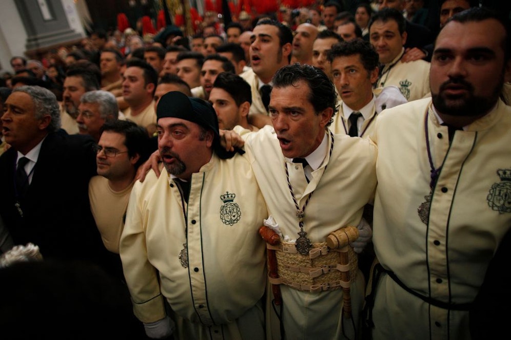 Wie es sich für einen echten Katholiken gehört, erschien der 52-Jährige in religiöser Tracht. Bei der Prozession durch die Straßen der Hafenstadt Málaga präsentierte sich der Schauspieler sehr andächtig.