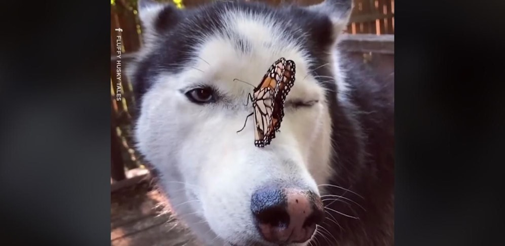 Die Reaktion des Hundes auf den Schmetterling, der mitten auf seinem Kopf landet, erheitert derzeit das Netz. Eine Mischung aus Verwunderung und liebevoller Bewunderung für den schönen Schmetterling - einfach toll! (red)