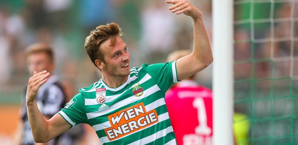Achtung, Radarkontrolle in Wien-Hütteldorf! Rapid-Flügelflitzer Philipp Schobesberger wurde nicht in der 30er-Zone vor dem Stadion geblitzt, sondern auf dem grünen Rasen - mit einem internationalen Top-Wert von 35,78 km/h!