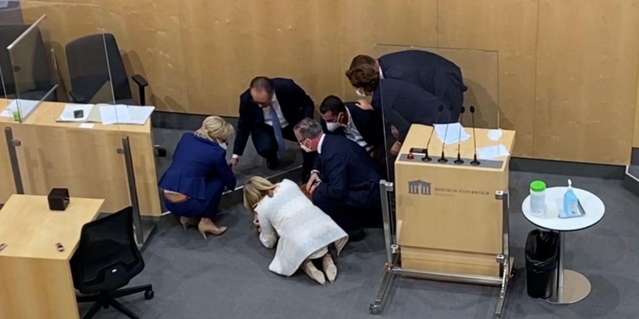 Die SPÖ-Frauenvorsitzende Eva-Maria Holzleitner war während ihrer Rede hinter dem Pult kollabiert. Es dürfte sich um einen Schwächeanfall gehandelt haben. Die Kameras schwenkten weg, die Sitzung wurde sofort unterbrochen.