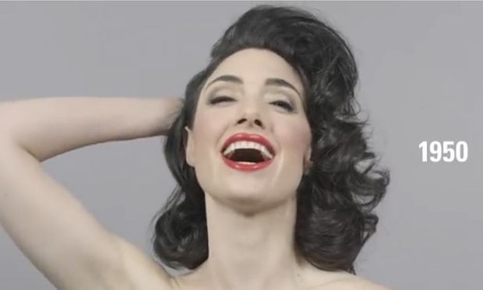 Ein Youtube-Video verdeutlicht dies, indem ein Model nacheinander so gestylt und frisiert wird, wie es dem Schönheitsideal des jeweiligen Jahrzehnts entspricht.