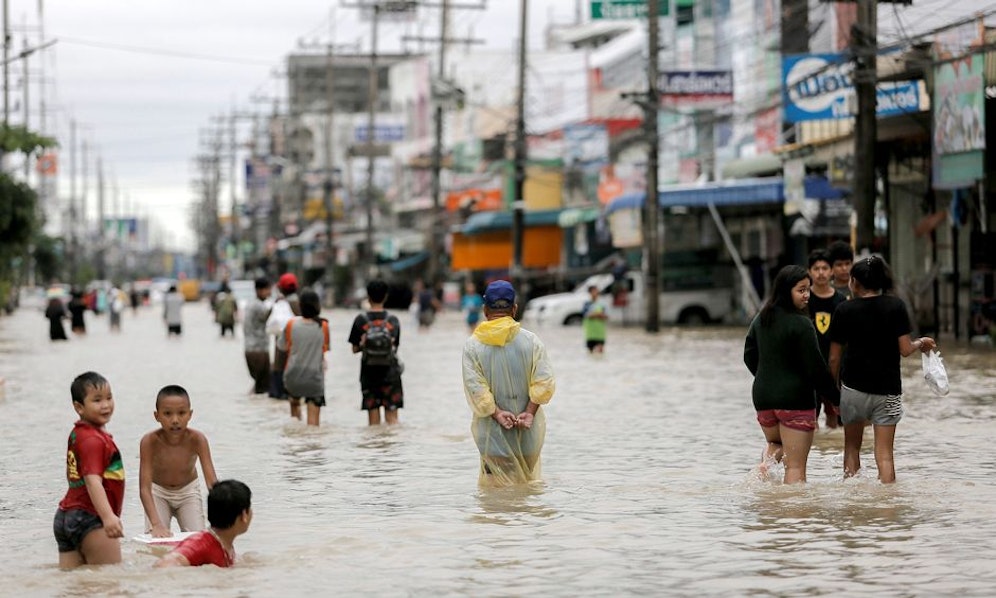 Die Regierung rief in der Provinz Nakhon Si Thammarat den Ausnahmezustand aus, ein Flughafen wurde gesperrt. Das Wasser reicht in manchen Dörfer bis zu den Dächern der Häuser - und somit auch über die Absperrungen des Krokodilgeheges im Tha Lad Zoo.