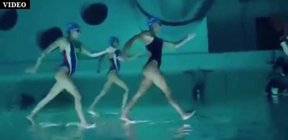 Leichtfüssig schweben drei Schwimmerinnen über der Wasseroberfläche, um kurz darauf darin einzutauchen. Doch wie ist das möglich?