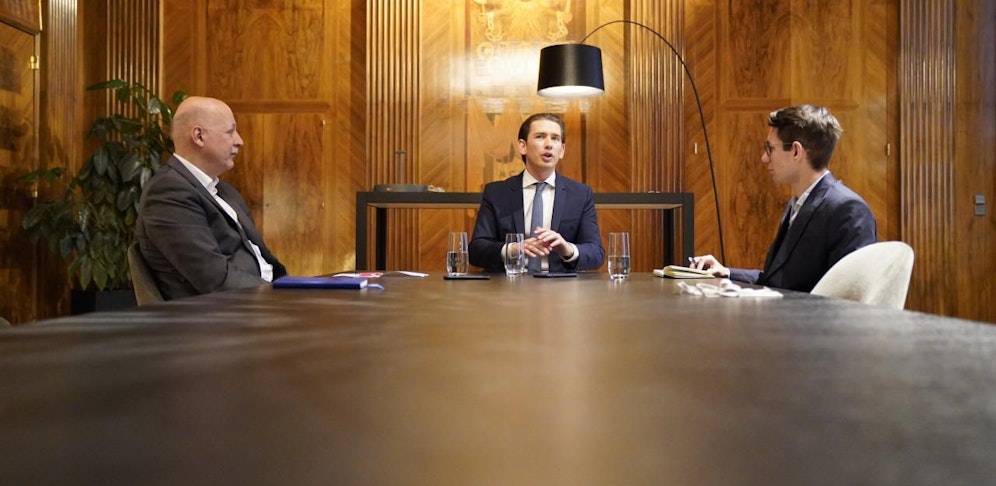 Bundeskanzleramt, Kreisky-Zimmer. Wenige Stunden nach der Angelobung spricht Sebastian Kurz mit den "Heute"-Chefredakteuren Christian Nusser und Clemens Oistric über Tempo 100 auf Autobahnen, Schnitzelessen und die geplante Steuerreform.