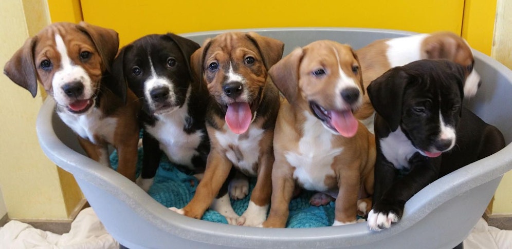 Die fünf Buben und ihre Schwester sind in einem recht guten Allgemeinzustand, etwa acht Wochen alt und womöglich Stafford-Mischlinge. Ein Besitzer konnte bis dato nicht ermittelt werden.