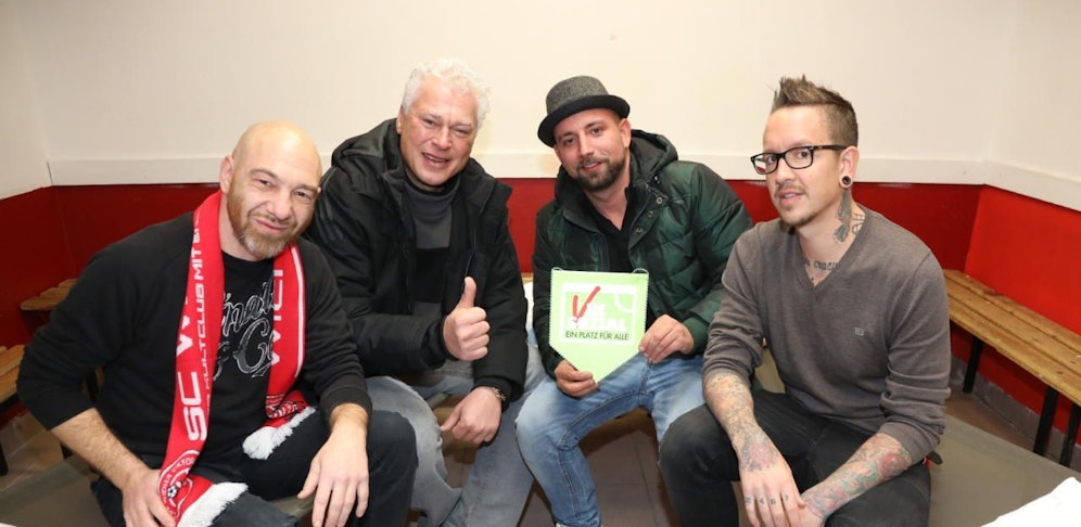 Viktoria-Cheftrainer Toni Polster zeigte die Fußballerkabinen, die der Club im Winter samt Feldbetten für bis zu 20 Obdachlose zur Verfügung stellt. Gregory ernannte die Musiker zum Dank zu Ehrenmitgliedern auf Lebenszeit! (csi)