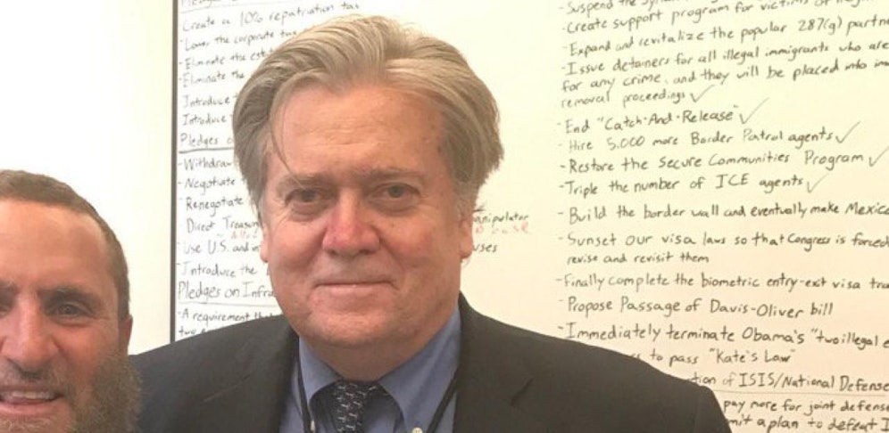 Dem Brett wird große Relevanz zugeschrieben, denn bevor Trumps Strategien durch die Hallen des US-Kongress geistern oder von Bundesrichtern angefochten werden, stehen sie auf dieser Wand in Bannons Büro – und zwar in Form einer gigantischen To-do-Liste.