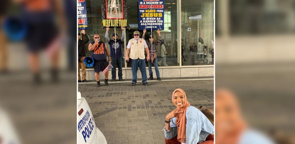 Die 24-jährige Shaymaa Ismaa'eel aus Washington DC war vor wenigen Tagen mit einer Freundin auf dem Weg zu einer Islamkonferenz, als sie vor dem Eingang eine Gruppe Demonstranten traf. Viele von ihnen hielten Schilder hoch, auf denen zu lesen war: "Der Islam ist eine Religion des Blutes und Mordes." Andere schrien der Hijab tragenden Frau zu, sie solle "zur Hölle fahren".