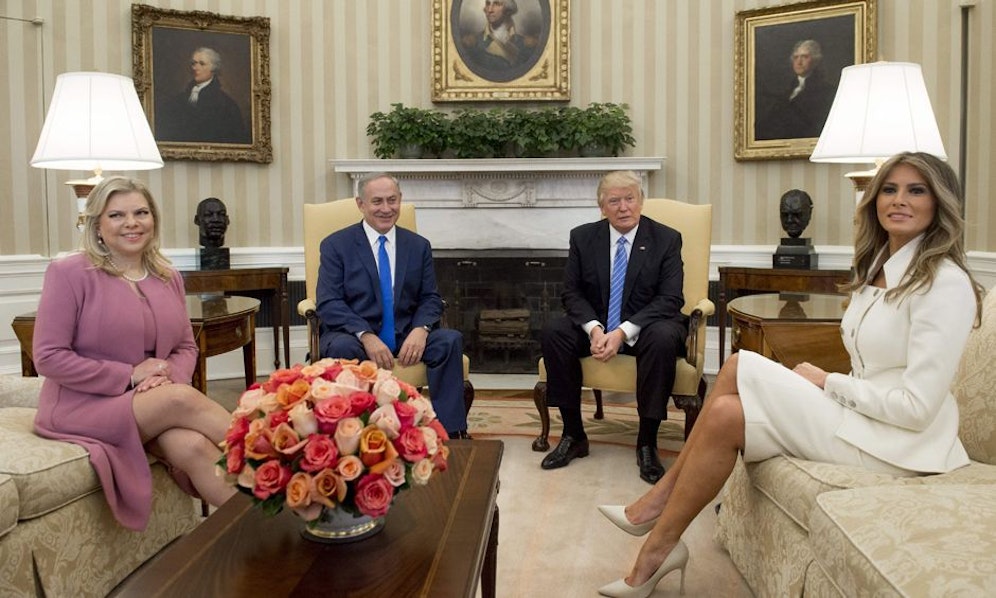 Trump nahm von der bisherigen US-Politik Abstand, im israelisch-palästinensischen Konflikt nur auf eine Zwei- Staaten-Lösung zu setzen. Er schließe weder eine Zwei- noch eine Ein-Staaten-Lösung aus. Netanyahu bekräftigte, dass die Palästinenser als Vorbedingung für einen Friedensprozess den "jüdischen Staat" anerkennen müssten.