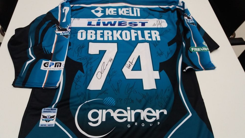 Übergeben wird der Gewinn von "Black Wings"-Stürmer Daniel Oberkofler und Manager Christian Perthaler höchstpersönlich in der Linzer Eishalle. Natürlich mit Foto!