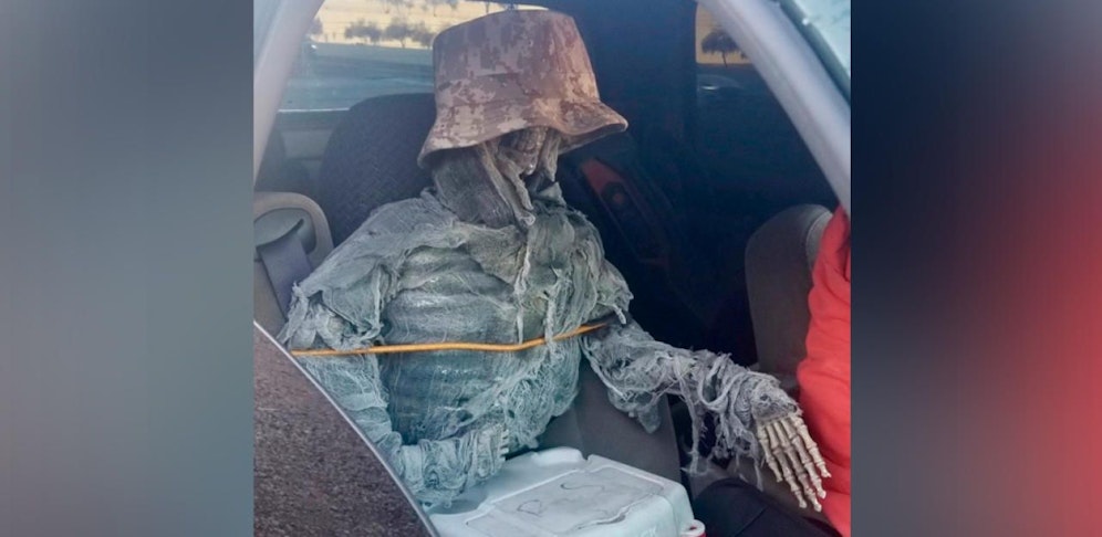 Ein US-Autofahrer glaubte, mit einem Plastikskelett die Polizei täuschen zu können. Doch da hatte er sich geschnitten. Jetzt zerreißt sich das Netz vor Lachen.