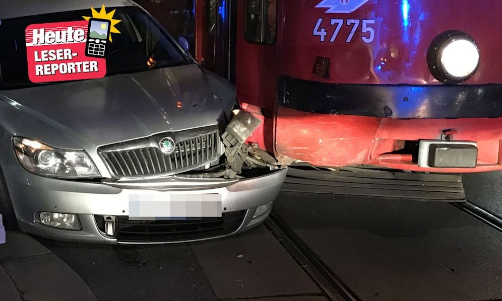 Der graue Skoda mit Schwechater Kennzeichen wollte gegen 19.30 Uhr aus der Kandlgasse in die Kaiserstraße abbiegen. Dabei übersah er die Straßenbahn der Linie 5 und rammte sie seitlich.
