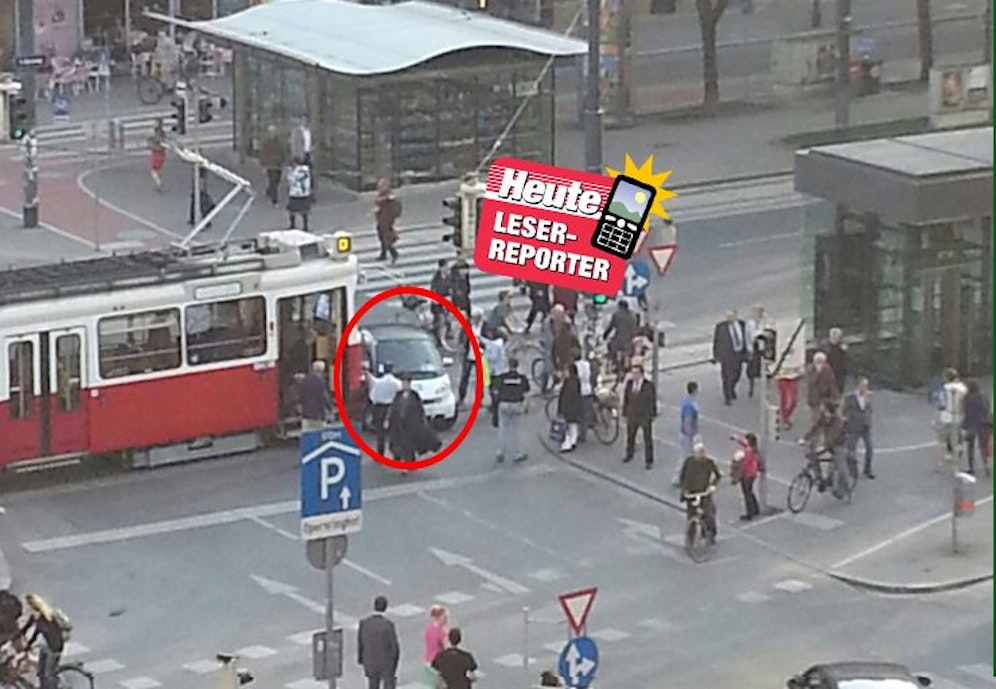 Vor der Staatsoper krachten ein Smart und eine Straßenbahn zusammen. Bei dem Smart sieht es so aus, als wäre es ein Car2Go. Auch, wenn die Fahrzeuge Dellen davontrugen, so schienen die Menschen unverletzt geblieben zu sein.