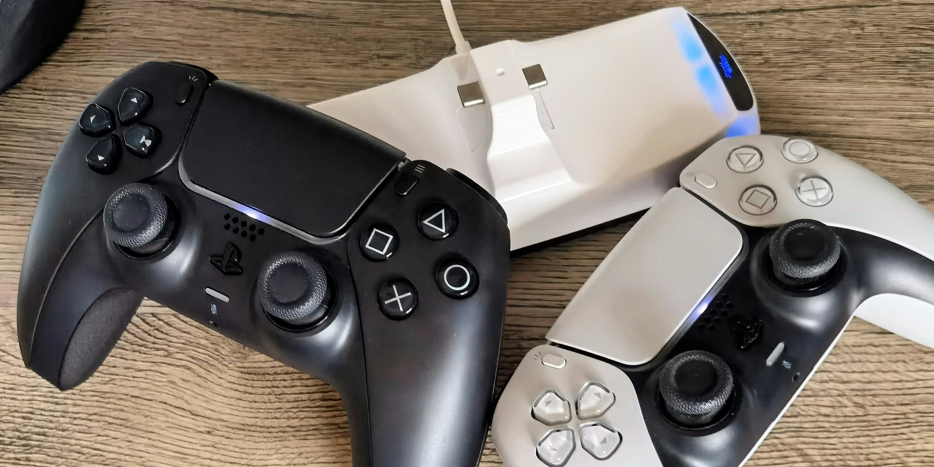 Werden zwei Controller gleichzeitig angedockt, stehen sie sich spiegelverkehrt gegenüber. Das Dock selbst kann mit dem mitgelieferten USB-C-zu-USB-A-Kabel entweder an einen Netzadapter oder direkt an einen der USB-Anschlüsse an die PlayStation5-Konsole gehängt werden. Bei ersterer Methode wäre es allerdings praktisch gewesen, einen Ein-/Aus-Schalter am Doch zu verbauen, damit es nicht rund um die Uhr lädt. Praktisch ist dafür die Verbindung mit der PS5: Dann lädt das Dock nämlich nur, wenn die Konsole läuft, aber auch wenn sie im Standby-Modus ist.