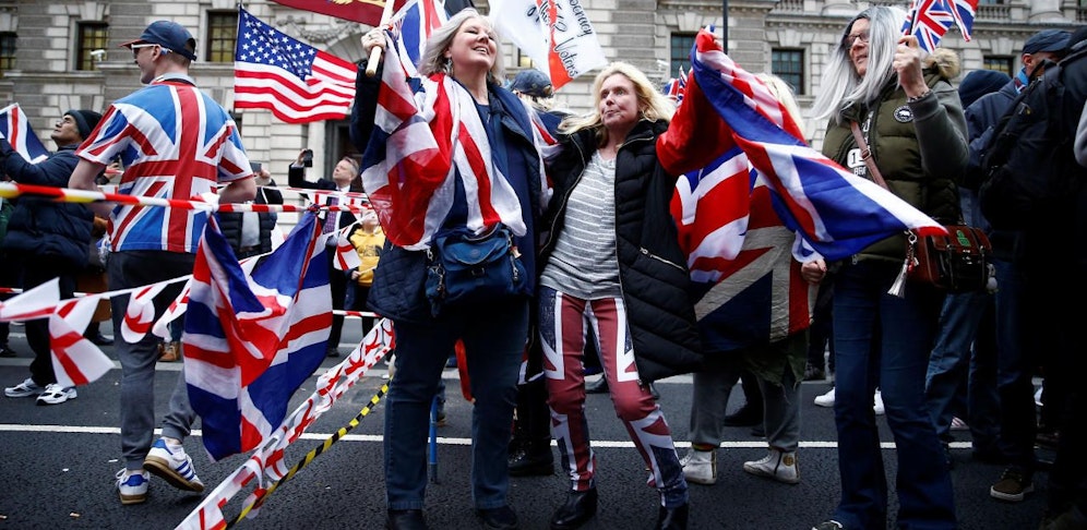 In seiner Fernsehansprache kurz vor dem Brexit - in der er kein einziges Mal das Wort "Brexit" in den Mund nahm - hat der britische Premierminister Boris Johnson zur nationalen Erneuerung aufgerufen. Was das für einige seiner Anhänger heißt, tragen sie auf dem Parlamentsplatz auf roten Kappen zur Schau: "Make Britain Great Again" steht darauf in Anspielung auf den Wahlslogan von Johnsons Unterstützer US-Präsident Donald Trump.