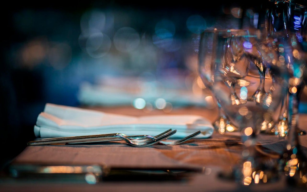 Ganz klassisch wird bei einem Dinner das Besteck in der Reihenfolge des Menüs von außen nach innen eingedeckt und benutzt. Die Gabeln liegen immer links, Messer und Suppenlöffel rechts vom Teller platziert. Beim Tisch eindecken gehen Sie deshalb wie folgt vor: Ganz rechts liegt der Suppenlöffel, daneben das Vorspeisenmesser oder Fischmesser, direkt neben den Tellern das Messer für den Hauptgang.