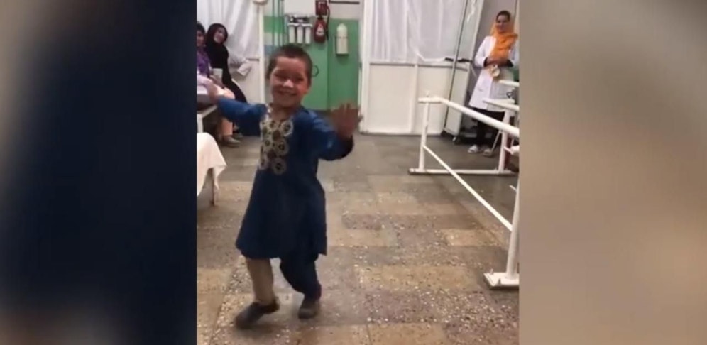 Auf den Bildern ist zu sehen, wie der fünfjährige Ahmad Rahman in der orthopädischen Klinik des Roten Kreuzes in Kabul breit grinsend tanzt und sich freut, während seine Familie und Pfleger lachen und klatschen.