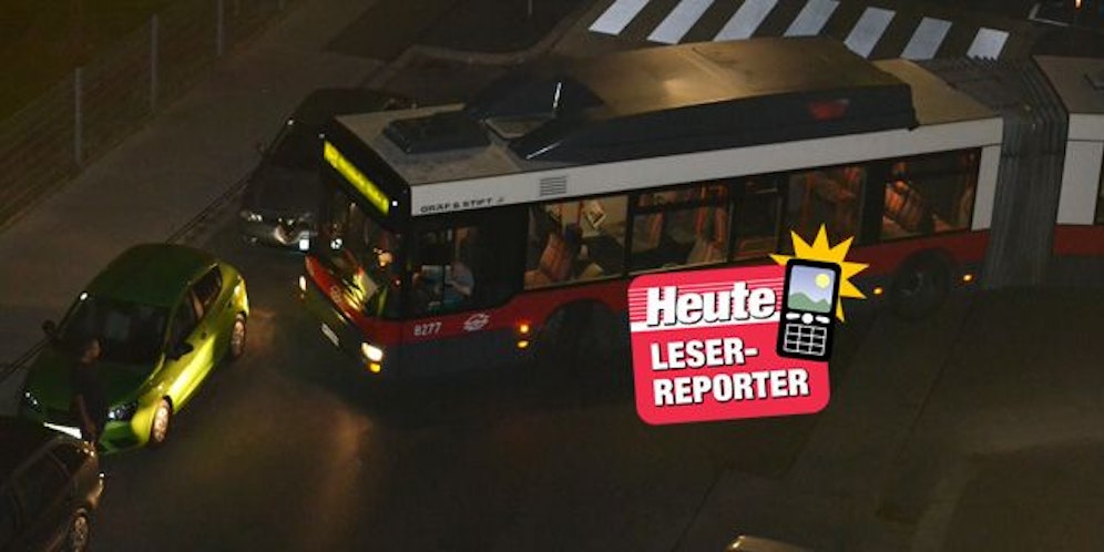 Dem Buschauffeur gelang es nicht, die Kurve an der Ecke Straßgschwandtnerstraße und Dreyhausenstraße zu kratzen. Ein Auto war so abgestellt worden, dass der Winkel für den Gelenkbus zu eng war. "Heute"-Leserreporter Heinz Korn hielt die Szene fest.