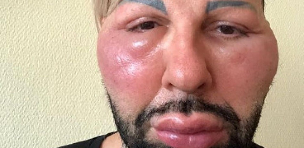 "Ich leide unter einer Histaminintoleranz und hatte den Tag vorher schon Beschwerden, Schmerzen", so der 53-Jährige über seinen Zustand. "Dann wach ich Nachts auf um 3, da war das Gesicht schon aufgeschwollen. Gleich Kühlpads drauf. Wird besser werden. Morgens um sechs steh ich auf und sehe das im Spiegel. Alles zugeschwollen".
