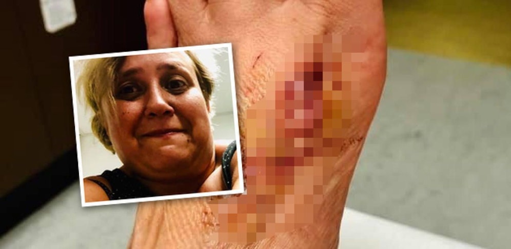 Dass sie dort nicht aus Wehleidigkeit hinging, zeigen Fotos von ihrem linken Fuß eindrucksvoll. Der Hecht hatte mit nur einem Biss eine klaffende Wunde hinterlassen, die Ärzte fanden darin sogar noch einen Zahn des Fischs. Rund eine Woche nach dem Vorfall humpelt Brigitte immer noch etwas.