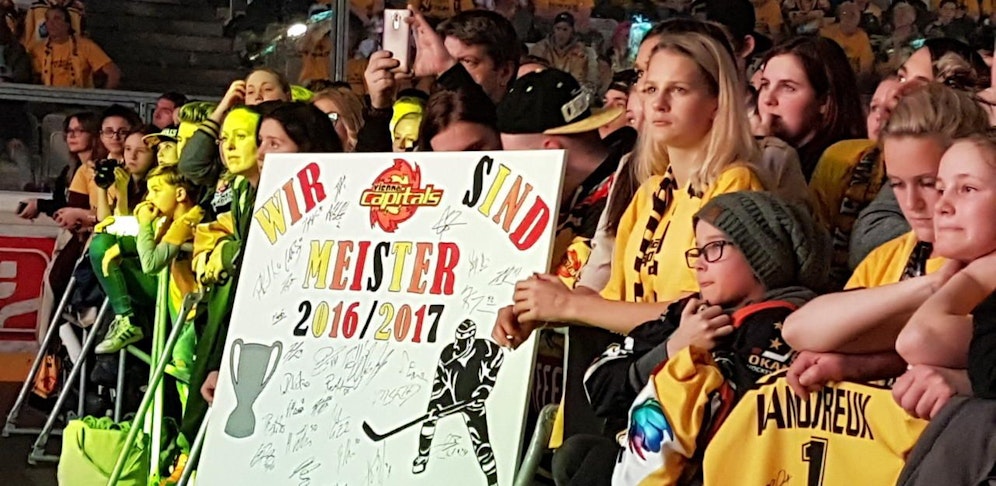 So konnte sich zum Beispiel jeder Caps-Anhänger mit dem Meister-Pokal auf einem Foto für alle Zeiten verewigen lassen. Und der Ansturm war gewaltig - laut Caps-Präsident Hans Schmid sorgten fast 5.000 Fans für eine Gänsehautstimmung in der Halle.