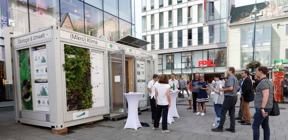 Wie das funktioniert, kann man jetzt am Martin-Luther-Platz mitten in Linz sehen. Dort steht "Mugli" – ein rundum begrünter Showcontainer. Bis Ende September kann man ihn sich anschauen.