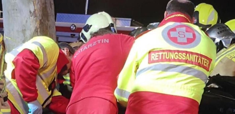 40 Minuten lang hielt ein Sanitäter den Kopf der 29-Jährigen während die Schwerverletzte aus dem zerfetzten Porsche geschnitten wurde. Die 29-Jährige war mit ihrem weißen Carrera auf der Magna-Racino-Allee im Bezirk Baden gegen einen Baum gefahren, der Stamm bohrte sich regelrecht durch den Wagen, das Unfallopfer wurde eingeklemmt.