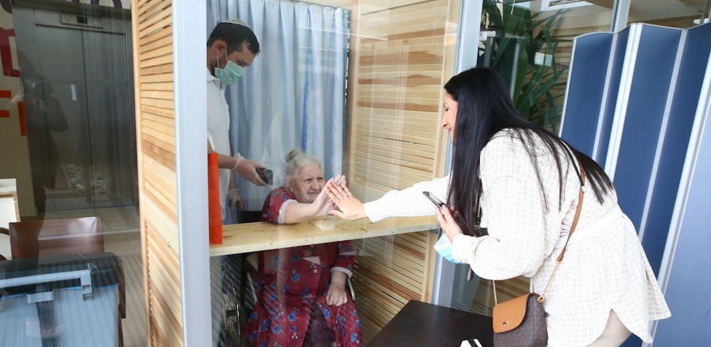 Nicht alle Heime haben mit den Besuchsmöglichkeiten gewartet. Das Maimonides-Zentrum der Israelitischen Kultusgemeinde in Wien-Leopoldstadt etwa errichtete im April eine Koje im Eingangsbereich.