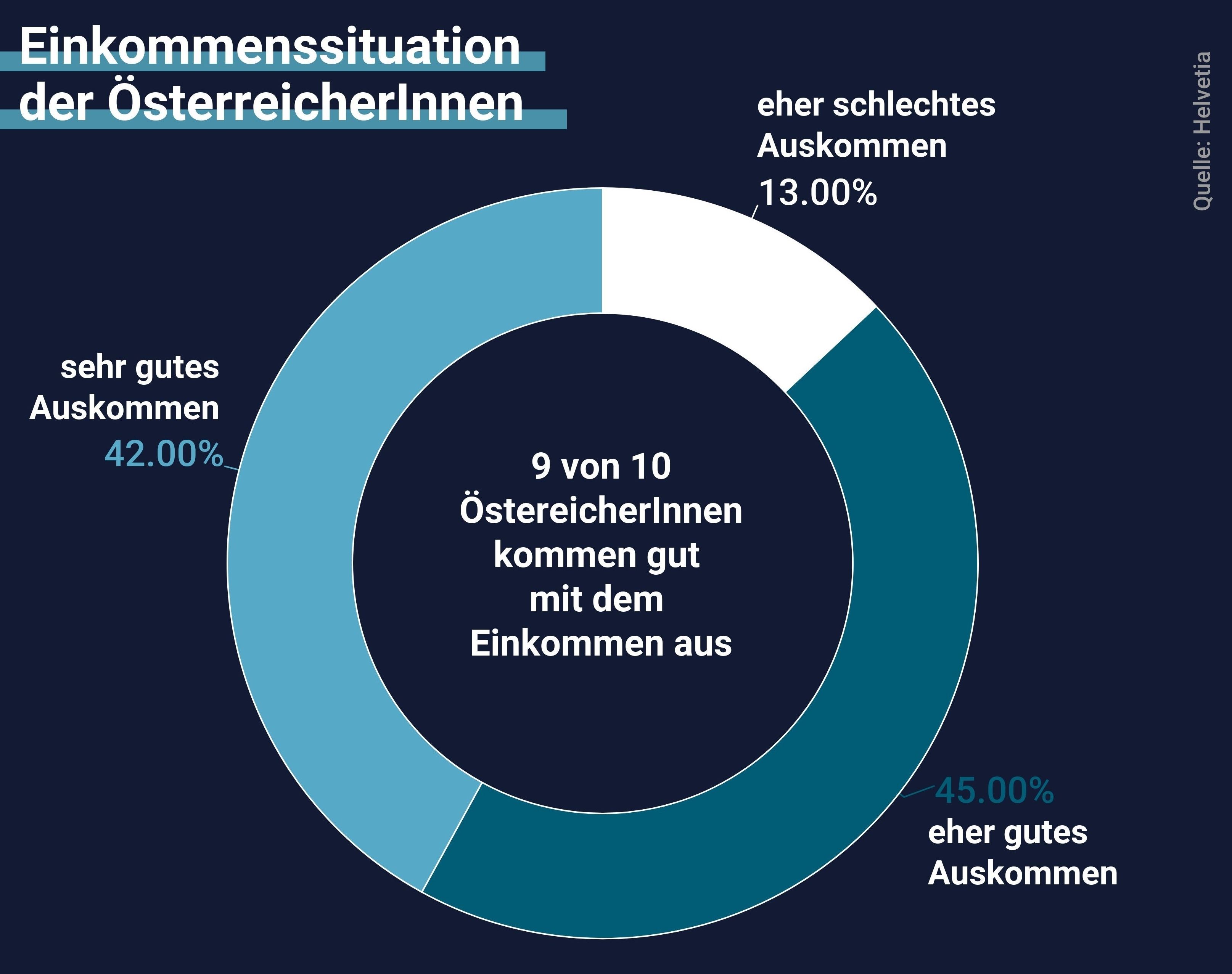 Fast 90 Prozent der befragten Österreicher gaben an, mit ihrem Einkommen entweder sehr gut oder eher gut auszukommen.