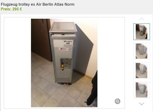 Neben Flugtickets oder Bonuspunkten werden auch wahre Sammlerstücke verkauft: Wer hat sich nicht schon mal einen Flugzeug-Trolley für zu Hause gewünscht. Für 295 Euro ist einem der Bordwagen sicher.