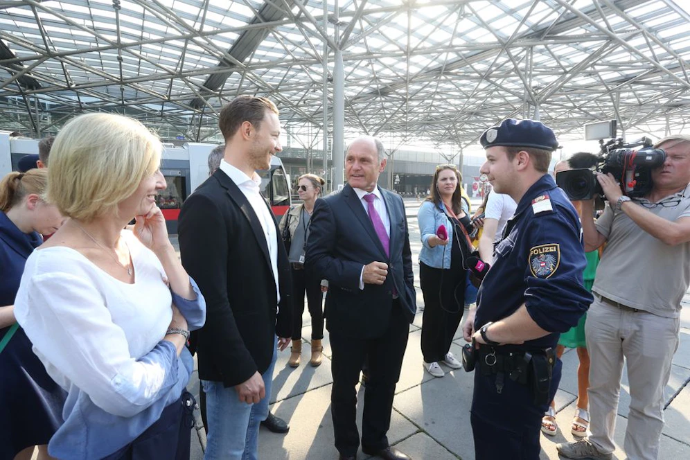 Innenminister Wolfgang Sobotka (VP) besuchte am Mittwoch mit ÖVP-Wien-Chef Gernot Blümel den Krimi-Hotspot, machte sich selbst ein Bild. Dabei wurde Sobotka von VP-Bezirkspolitikern begleitet, hörte sich von seinen Parteikollegen Ideen gegen die Kriminalität am Praterstern an.
