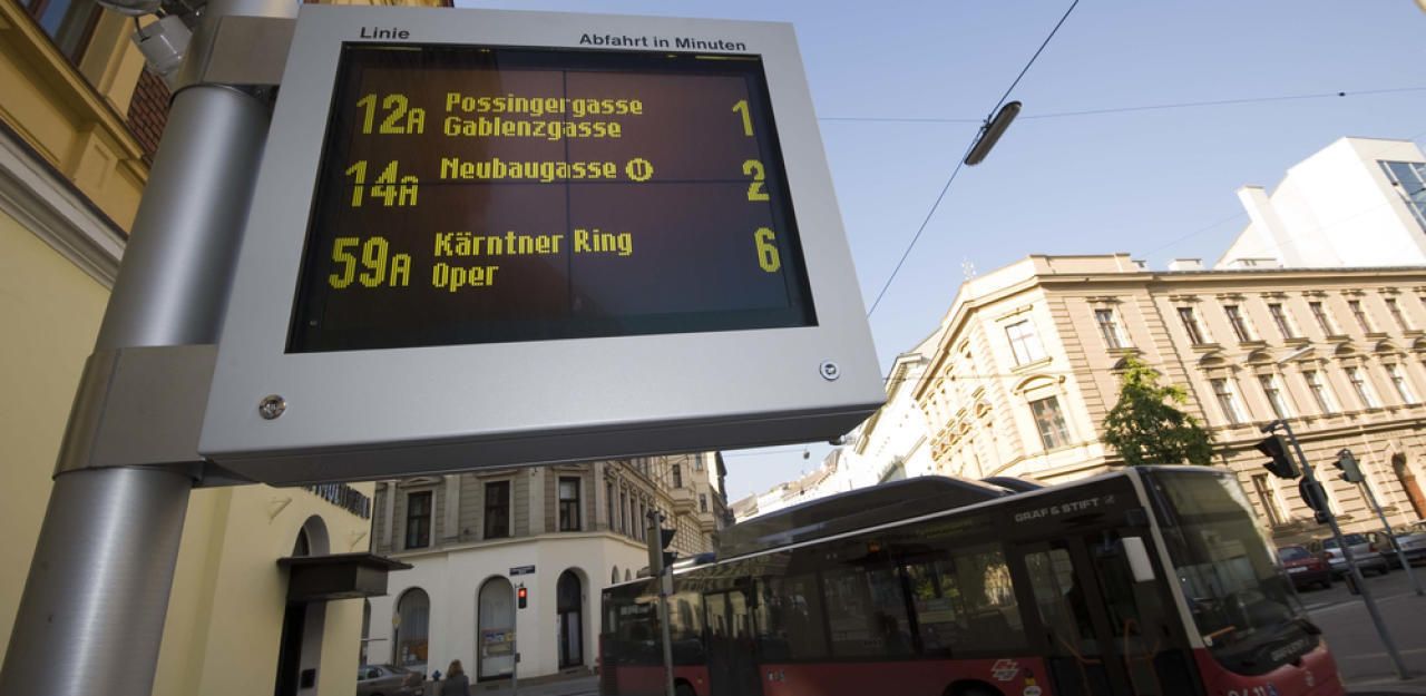 Wie viele Minuten muss ich warten, bis der nächste Bus kommt? Das zeigt an vielen Öffi-Stationen eine Anzeigetafel an. Seit Tagen ist diese Echtzeit-Anzeige ausgefallen. Auf manchen Anzeigetafeln wird darauf hingewiesen, auf anderen wird der Wert "null Minuten" angezeigt.