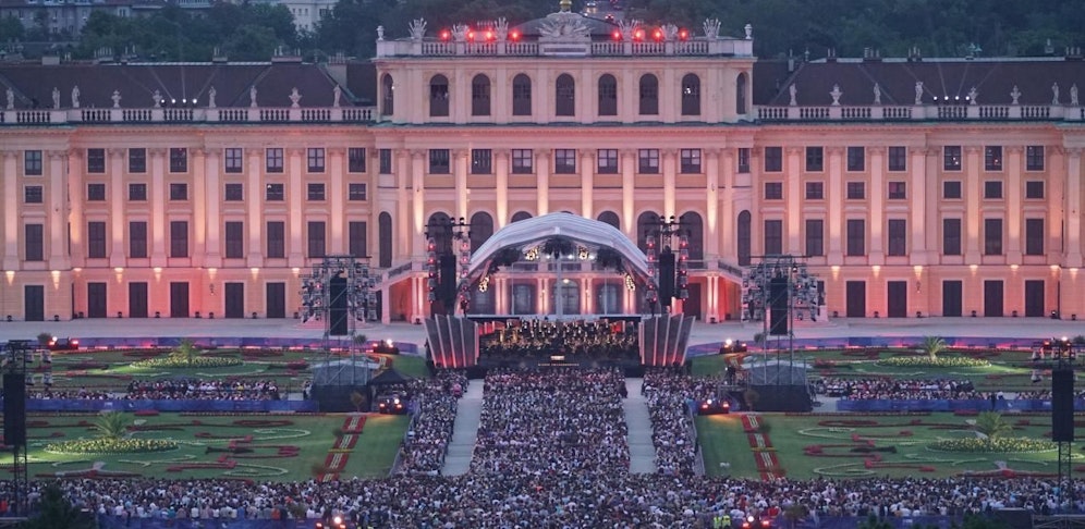 Die Wiener Philharmoniker laden am 20. Juni wieder zum Sommernachtskonzert im Schlosspark Schönbrunn ein. Unter dem Motto "Rhapsody in Blue" werden heute Werke von Bernstein, Gershwin und Sousa gegeben.