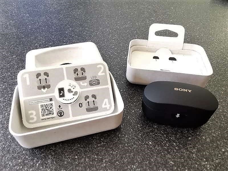 Bevor es überhaupt ans Auspacken der Kopfhörer geht, fällt die neue Verpackung des Unternehmens sehr positiv auf. Sony verwendet dazu einen kunststofffreien Karton, der laut Eigenangaben des Unternehmens aus Bambus- und Zuckerrohrfasern besteht. Zudem ist er recht minimal ausgefallen und will nicht mit einem riesigen Äußerlichen auffallen. Der Umweltschutz-Aspekt gefällt gut, und der Verzicht auf so viel Kunststoff wie möglich beschert Sony ein Extralob.