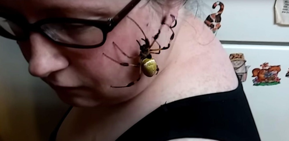 Was würden Sie machen, wenn Sie eine Goldene Radnetzspinne bei sich zuhause fänden? Die wenigsten wären wohl so cool wie diese Frau aus Pensacola (Florida, USA). Sie setzte die Spinne auf ihre Schulter und trug sie ins Freie. Dabei ließ sie sich nicht davon stören, dass das Tier auf ihrem Kopf auf Erkundungstour ging. (red)