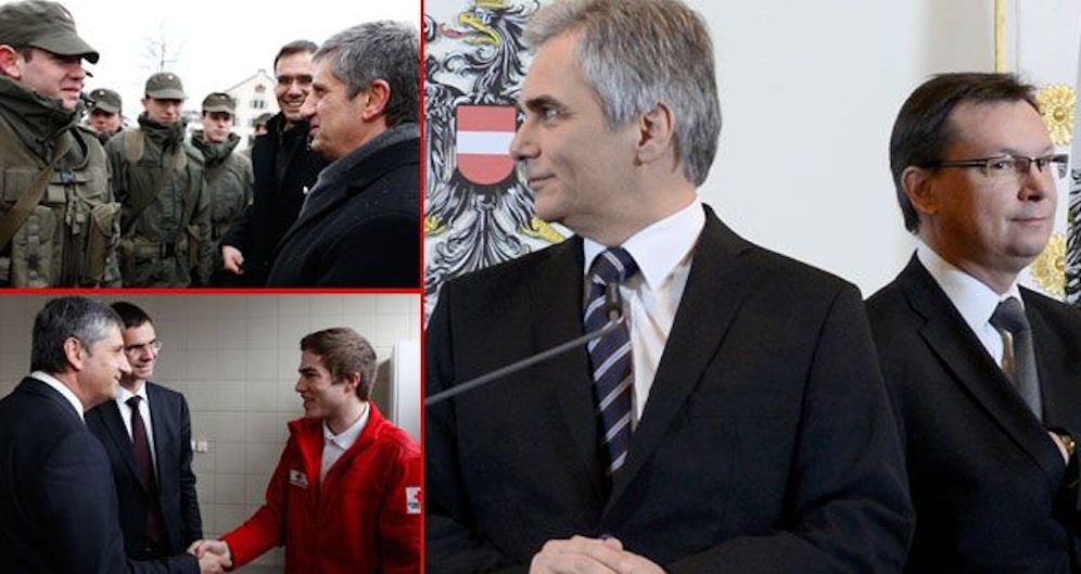 Zwei Tage vor der Volksbefragung die Zukunft des Bundesheeres haben sich die zwei großen Parteien in die letzte Schlacht um Wählerstimmen geworfen. Das "SPÖ-Berufsheer" rückte mit Werner Faymann, Verteidigungsminister Norbert Darabos und Sozialminister Rudolf Hundstorfer aus. Für die ÖVP schickten Regierungsmitglieder, Abgeordnete und Landesparteiobleute an die 30 Aussendungen mit dem Titel "Aus Überzeugung für Wehrpflicht und Zivildienst" aus. Nur am "Wahltag" selbst soll es ruhig bleiben.