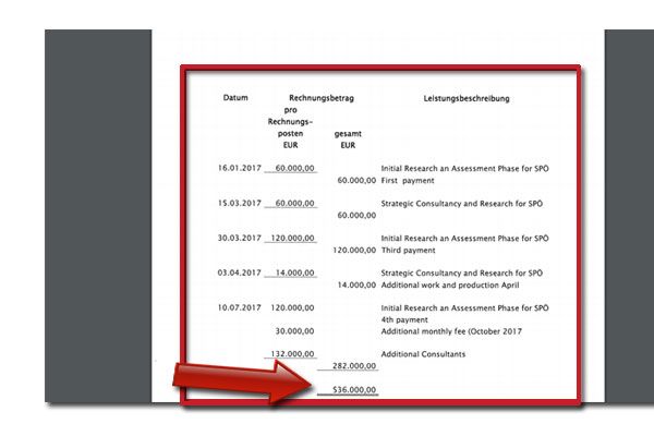 390.000 Euro waren das Honorar für Silberstein, ohne oben genannte Zusatzkosten. Er wurde für einen Zeitraum von 1. Oktober 2016 bis 30. September 2017 angestellt. Plus 30.000 Euro für eine Verlängerung auf Ende Oktober, wegen der vorgezogenen Neuwahlen.