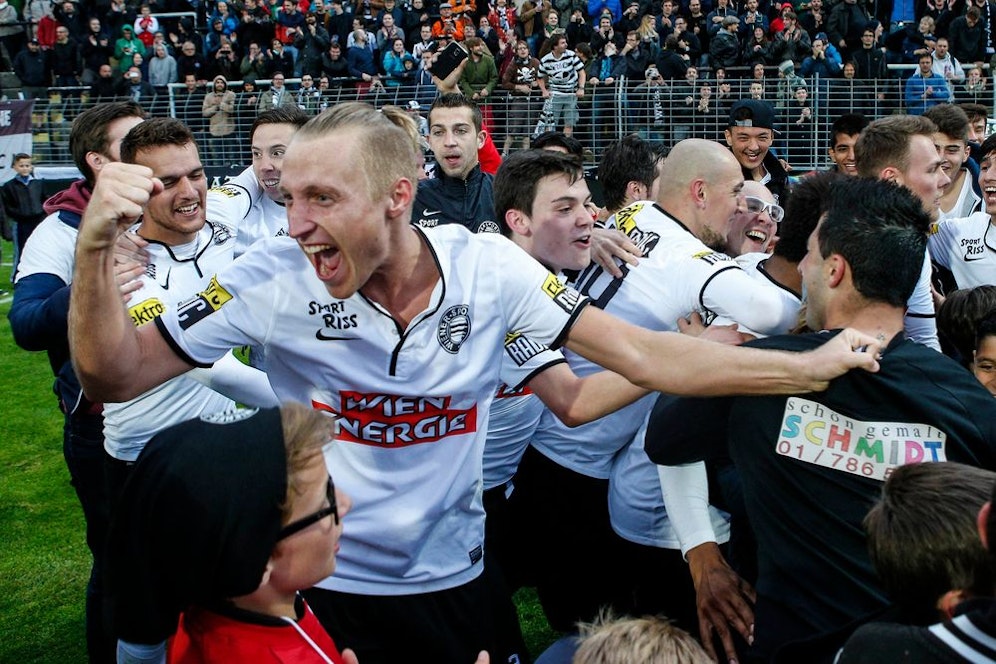 Schließlich ging ein Jubelschrei durch die Mannschaft - und anschließend die Fans. Als Elfter kann der Wiener Sportklub im schlimmsten Fall nicht absteigen. Gemeinsam mit den Zuschauern auf der Friedhofstribüne jubelte die gesamte Mannschaft über den positiven Ausgang eines durchwachsenen Jahres. Nicht ohne Seitenhieb auf den Rivalen Vienna, den man in der neuen RLO-Saison wiedersehen wird: "Die Vienna ist schon wieder hinter uns!", skandierten die Fans.