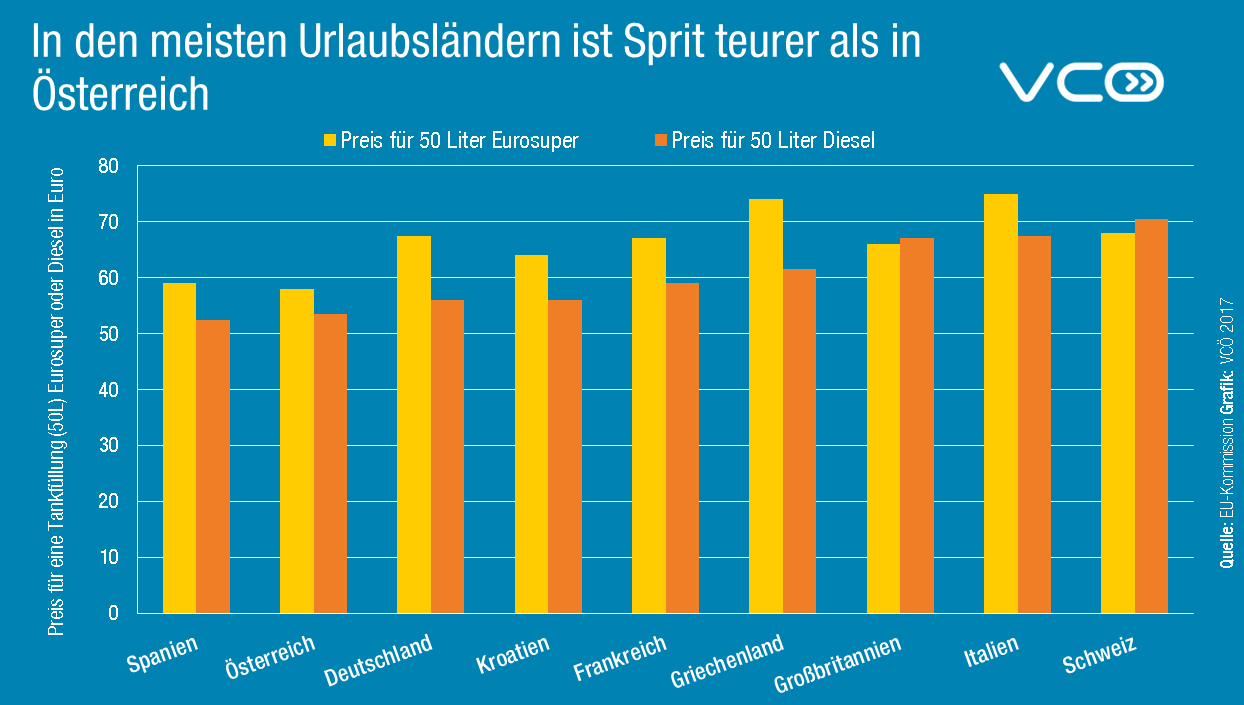Am Freitag beginnen in Ostösterreich die Sommerferien und das heißt für viele: Ab in den Süden. Der Verkehrsclub Österreich (VCÖ) weist darauf hin, dass in vielen Urlaubsländern Treibstoff deutlich mehr kostet als in Österreich.