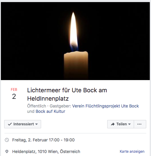 Am 2. Februar soll am Wiener Heldenplatz von 17 bis 19 Uhr ein Lichtermeer für die verstorbene "Ikone der Menschlichkeit" stattfinden. Innerhalb weniger Stunden sagten knapp 3.000 Menschen ihre Teilnahme zu.