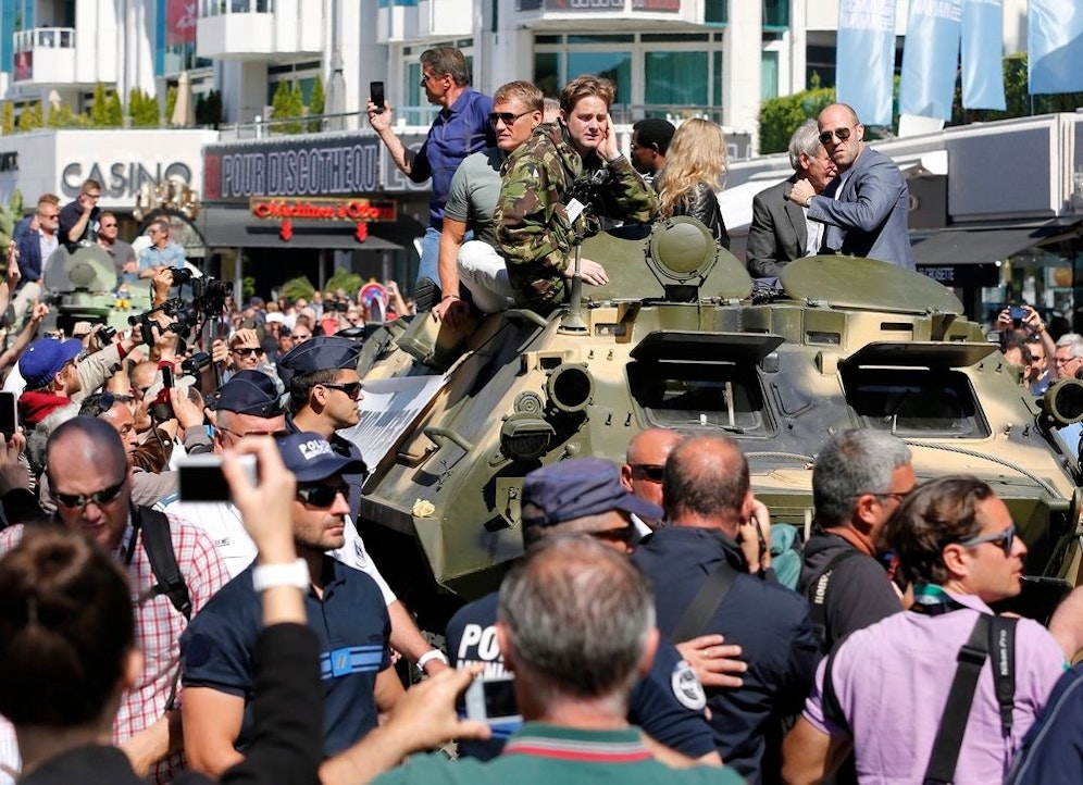 Blickpunkt Croisette. Am Sonntag rollten auf einmal Panzer über den Prachtboulevard von Cannes. Die Kriegsmaschinen kamen in friedlicher Absicht – als , der im August im Kino startet. Vor dem noblen Hotel Carlton kletterte eine ganze Armada von Hollywood-Stars auf die Tanks: Sylvester Stallone, HarrisonFord, Jason Statham und andere Action-Helden mehr ließen sich von den Fans bejubeln.
