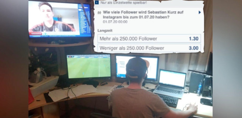 Konkret heißt ein Tipp-Vorschlag: Wie viele Follower auf Instagram wird Sebastian Kurz bis zum 1. Juli 2020 haben? Mehr oder weniger als 250.000 sind die beiden Vorschläge. Sind es weniger erhält man für 10 Euro Einsatz das 30-fache ausbezahlt. Sind es doch mehr, gibt es nur 13 Euro (Quote: 1,3).
