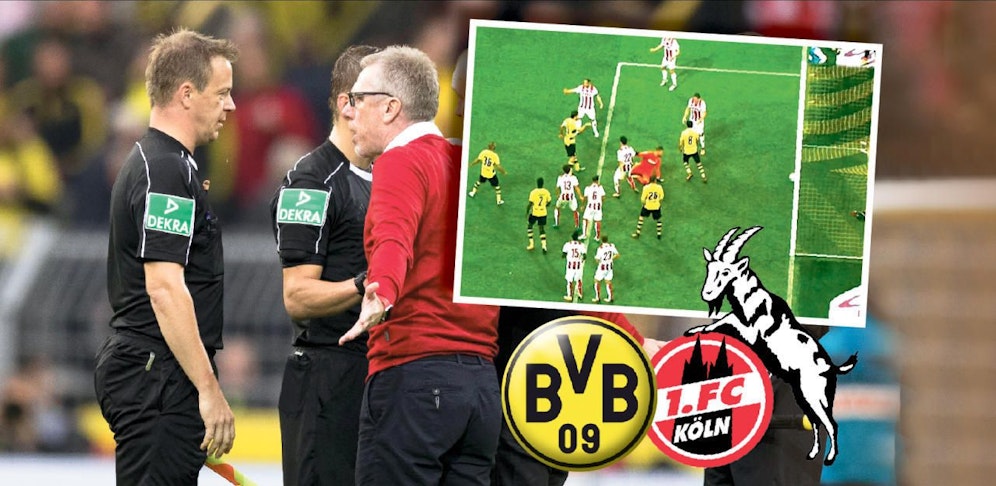 Köln kassiert beim 0:5 gegen Dortmund ein irreguläres Tor - trotz oder besser gesagt wegen dem Videoschiedsrichter. Die Stöger-Elf fordert eine Wiederholung.
