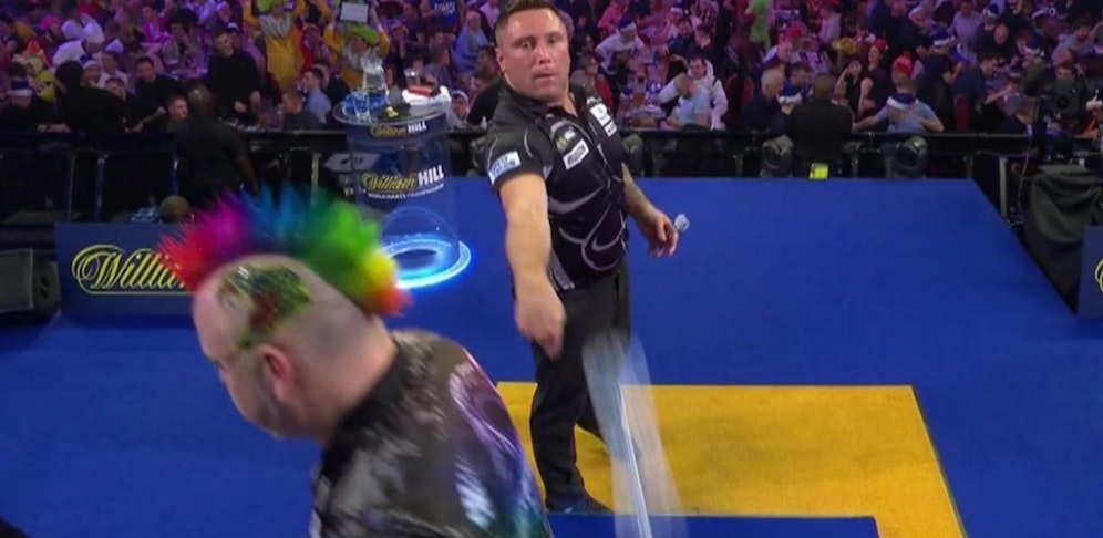 Ein wahres "Psycho-Duell" lieferten sich Peter Wright und Gerwyn Price im Halbfinale der Darts-WM. Die Pfeilen flogen tief und knapp am Kopf des Gegners vorbei – doch nachher war alles wieder gut.
