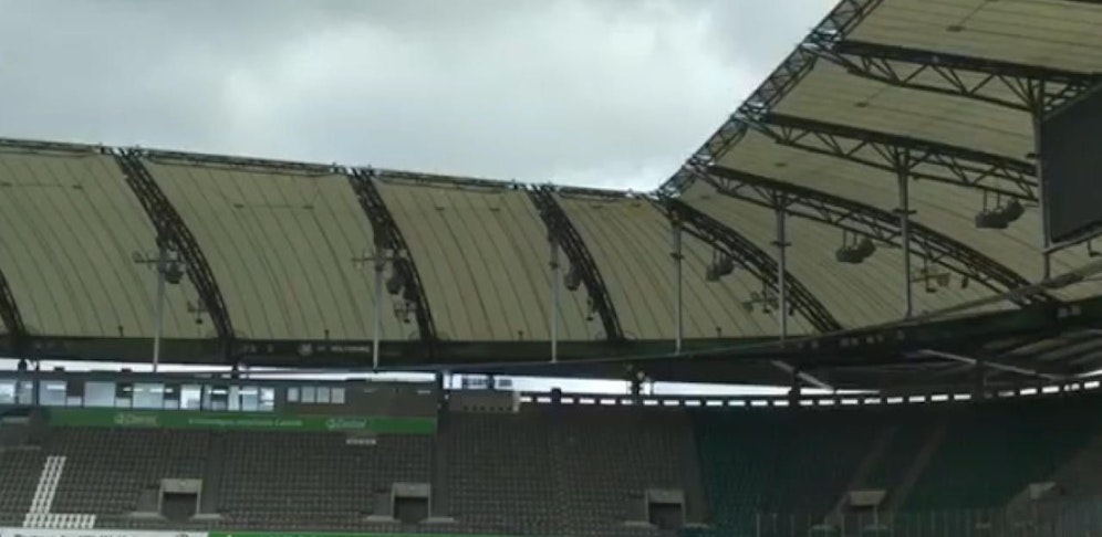 Zum Zeitpunkt der Aufnahme waren zum Glück keine Menschen in der Nähe. Im Sturm wurden die großen Dach-Lamellen zu riesigen Segeln. Laut dem VfL Wolfsburg ist im Stadion aber lediglich eine Glastüre zu Bruch gegangen.
