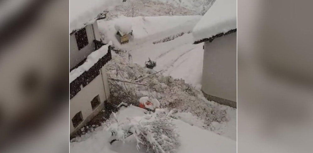 Ein Einwohner konnte auf Video festhalten, wie die Schnee- und Geröllmasse ins Dorf rollt. Die Aufnahme stellte er anschließend auf Facebook.